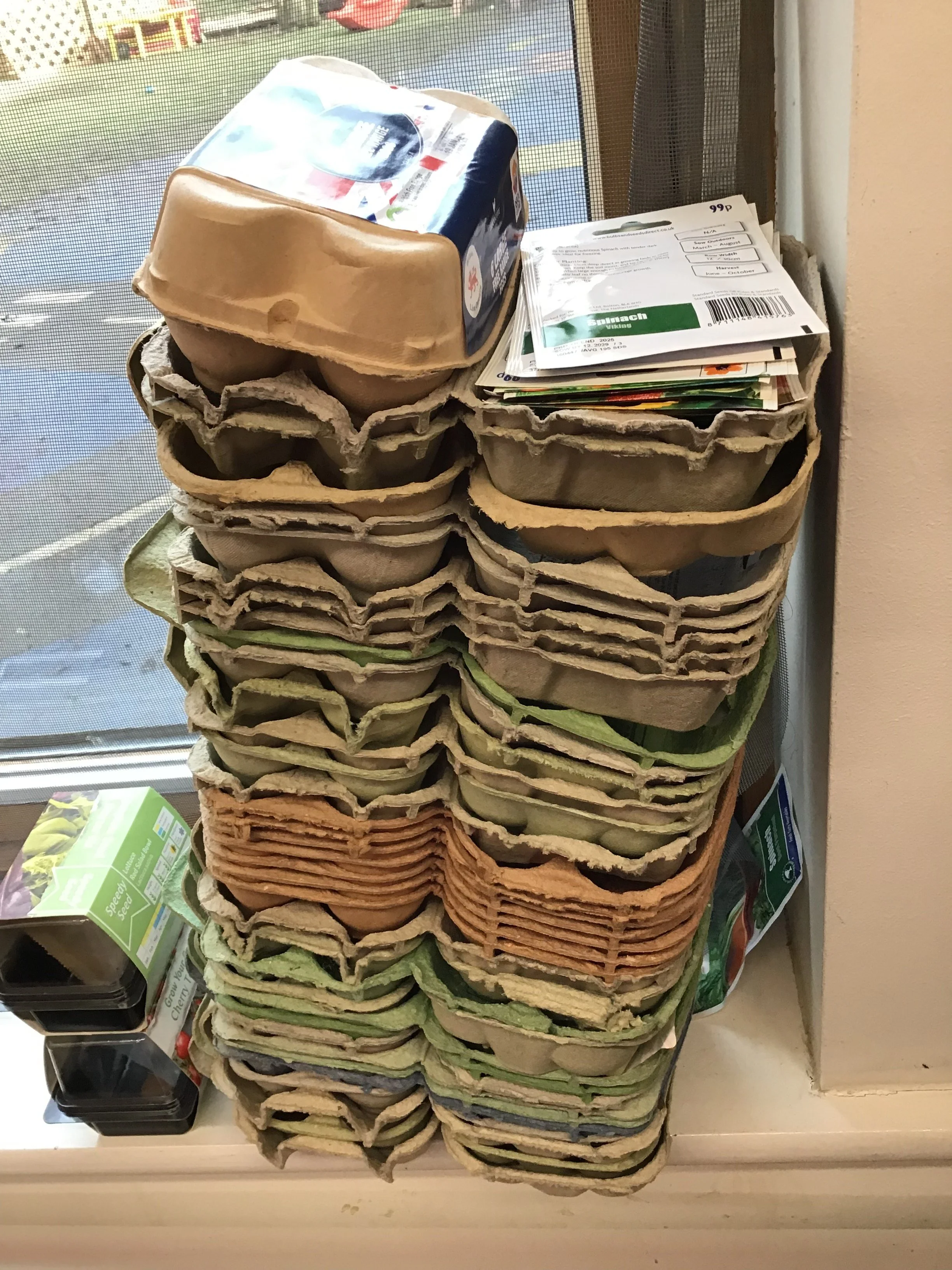 Our “pots” are ready for planting seeds. A huge thank you to parents who donated their egg cartons for our Food Cycle Project. More updates coming soon!